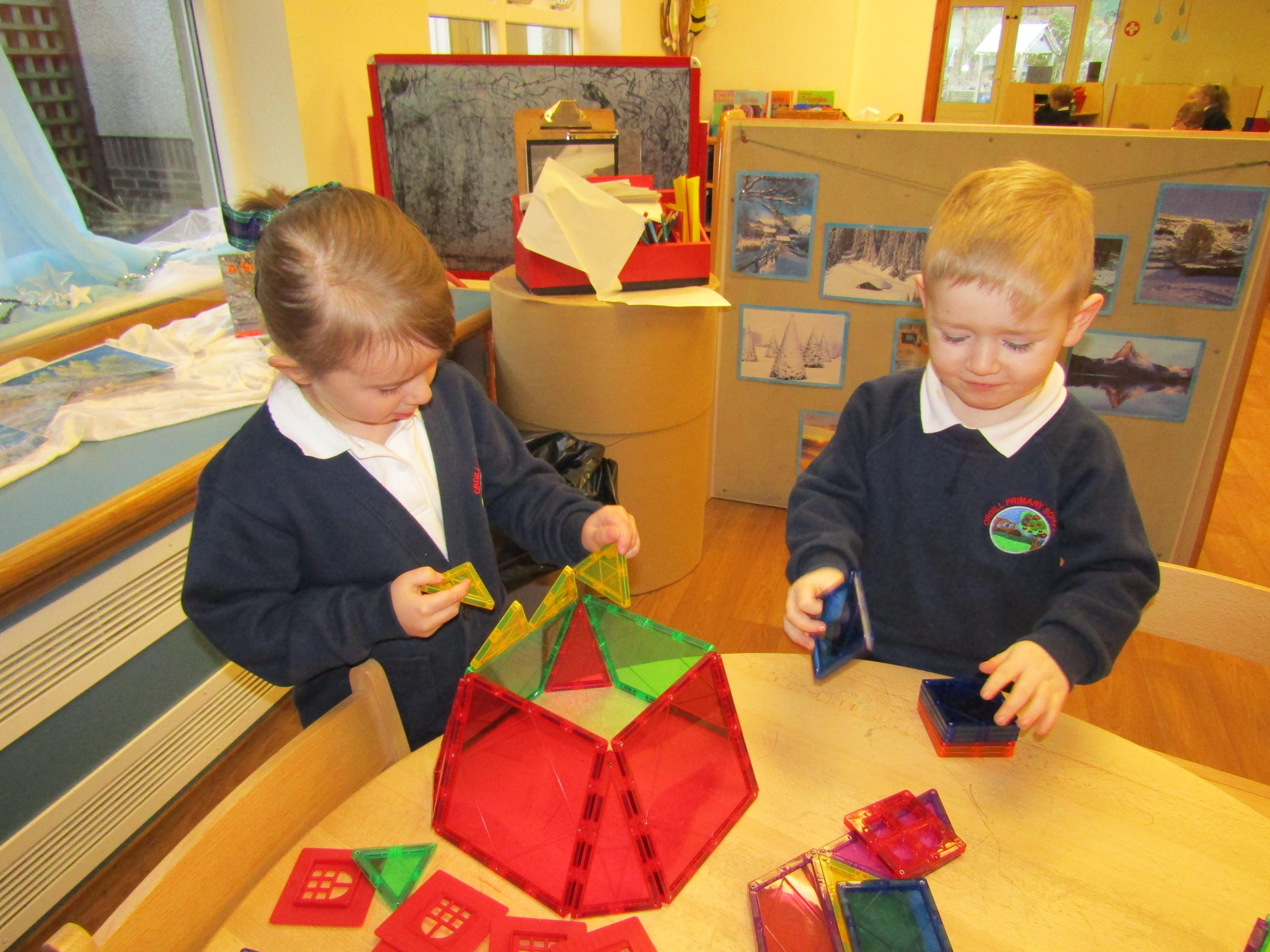 Children meet the requirements of the Early Years Curriculum by accessing a range of child initiated and adult led activities; learning through play in our indoor and outdoor classroom spaces. The indoor space is divided into different learning areas: